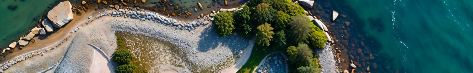 Van bovenaf onthullen de complexe contouren van de kustlijn een spectaculair geheim. Het samenspel van zand, de ingewikkelde, donkere patronen van kuststenen en het levendig groene bladerdak van bomen komen samen om een unieke en onmiskenbare vorm te vormen: het legendarische Steigerende Paard (Cavallino Rampante) van het Ferrari-logo.
